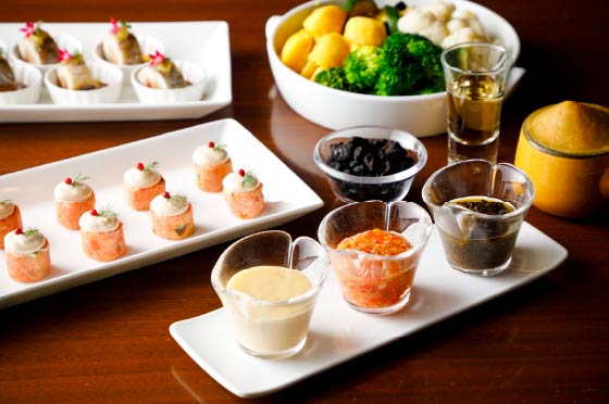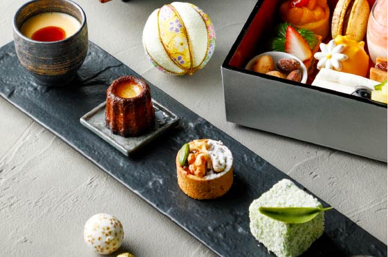 ハイクオリティなブッフェ料理と美しいメインディッシュが人気のテラスレストラン「フェリエ」。小さなお料理一つ一つに、齋造酢店・山中油店・原了郭など老舗の風味をまとわせました。