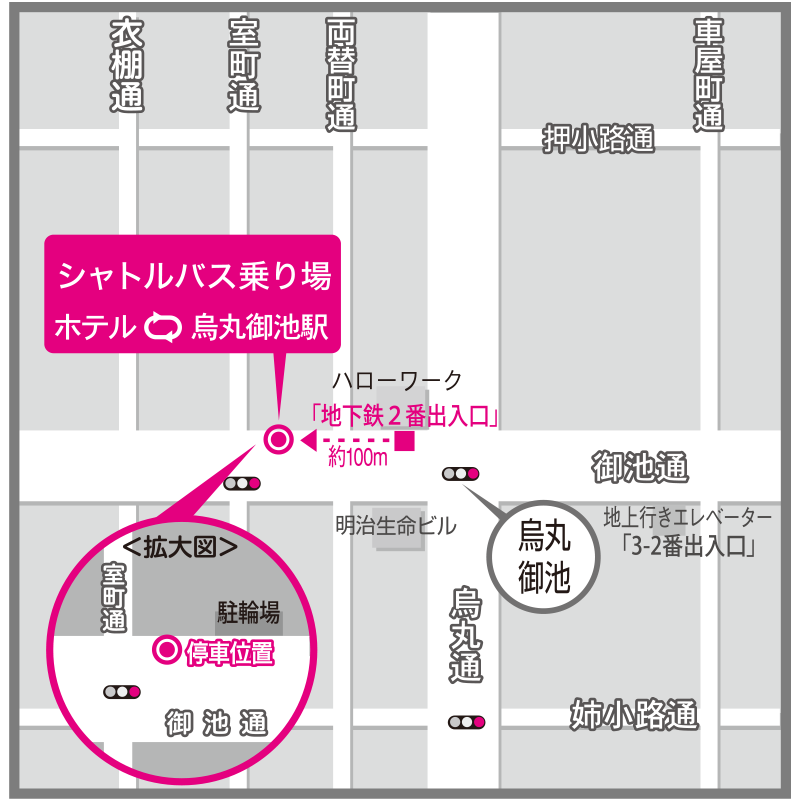 変更場所 : 地下鉄烏丸御池駅2番出入口を出て直進 約100m