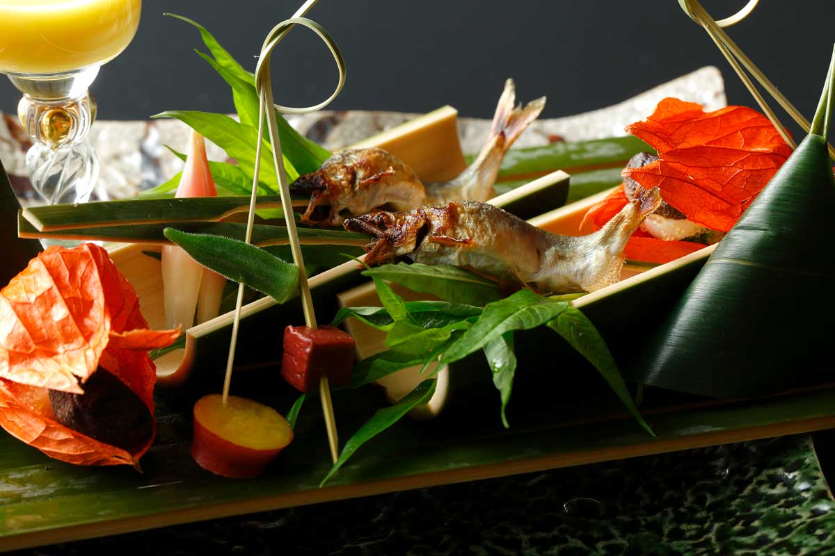 旬の味覚をふんだんに、お料理の全てに京都を感じる料理長おすすめのディナー懐石。季節が香る釜炊き御飯も人気です。