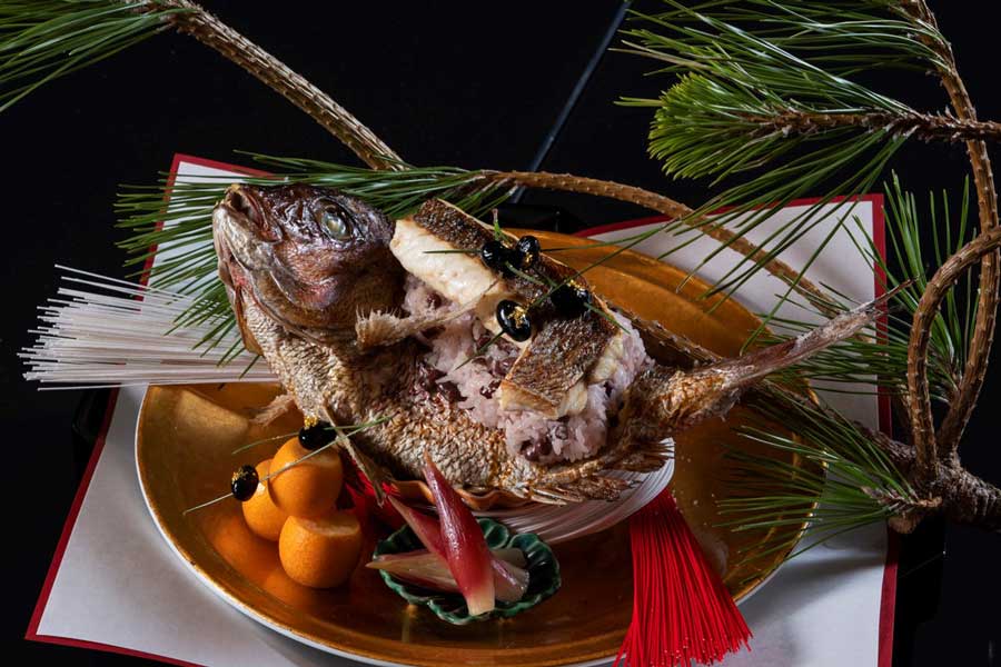 ・鯛の赤飯入り姿焼き(3日前までの要予約)お一人様1,500円