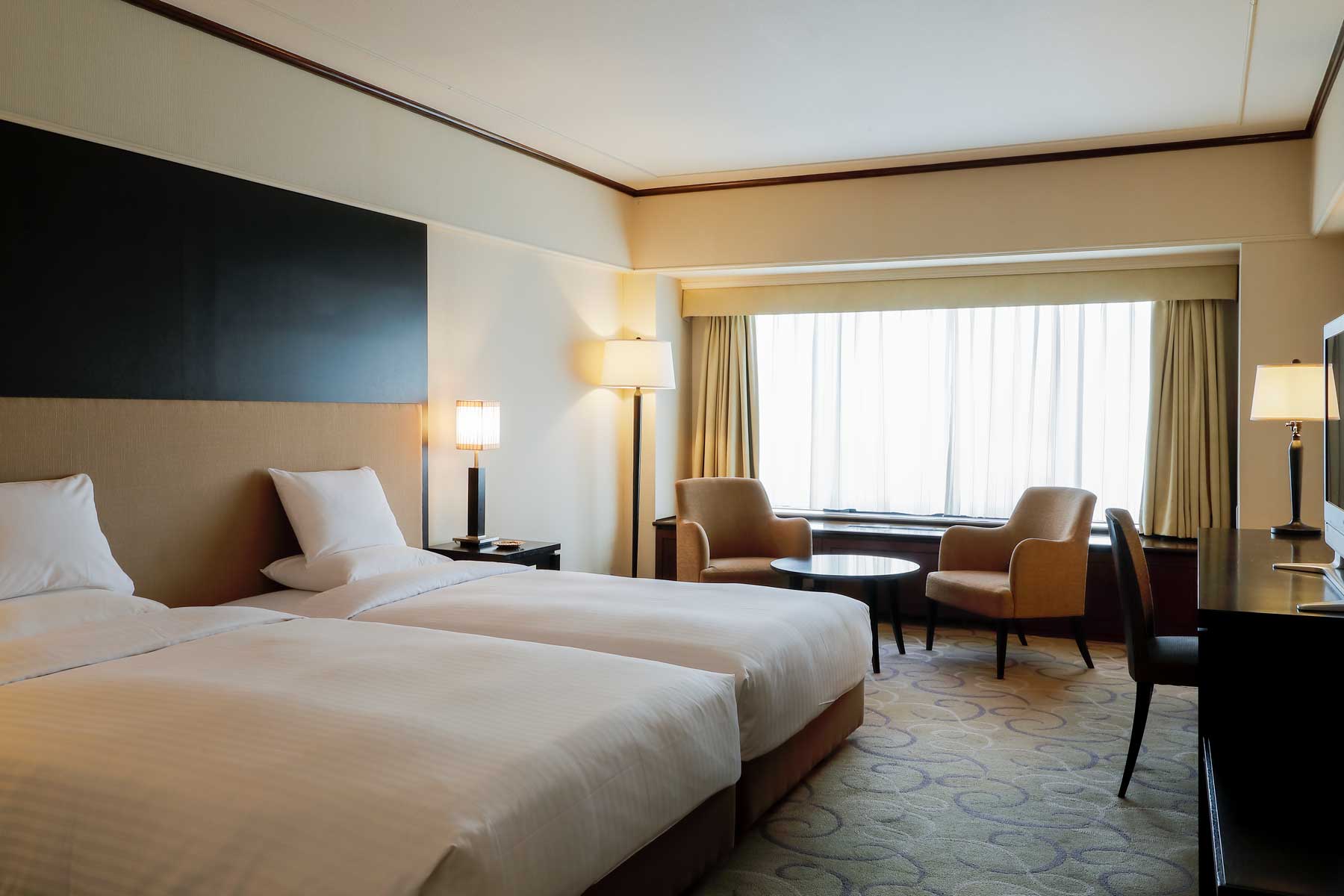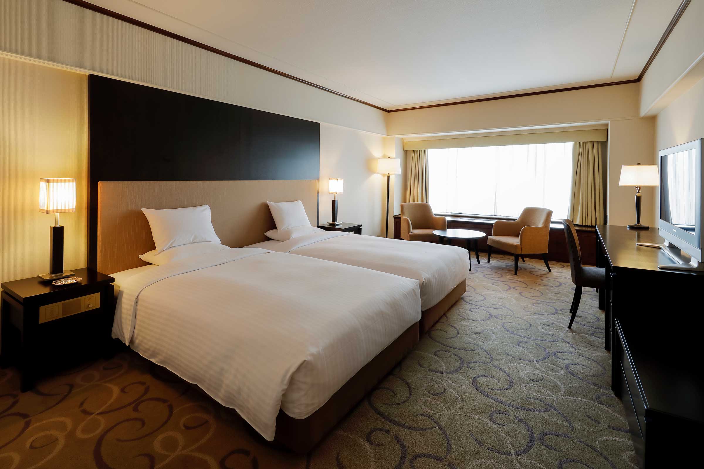 フランスベッドと共同開発したオリジナルベッドをハリウッドツインスタイルに。ベッドスペースには読書灯も設えているのでおやすみ前の読書にも便利です。 -