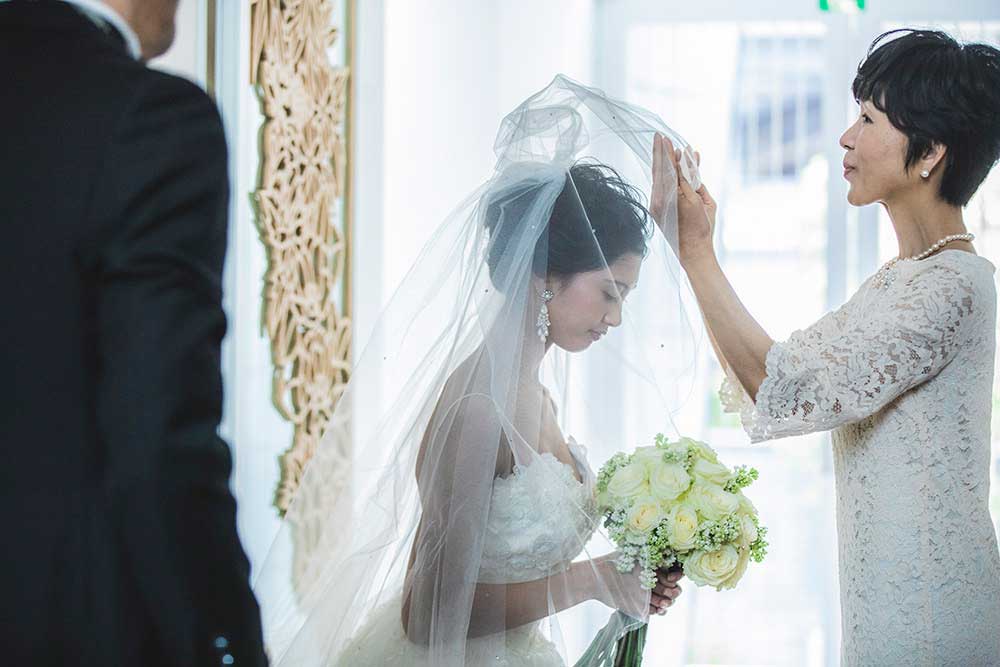 親御様がベールダウンセレモニーを行う。
