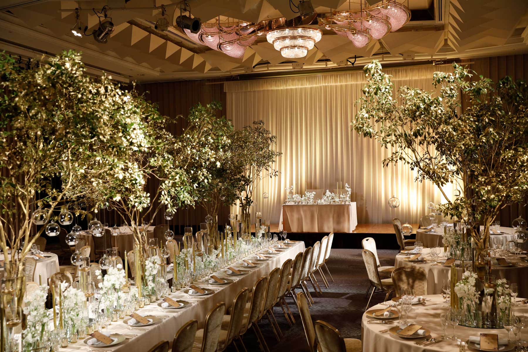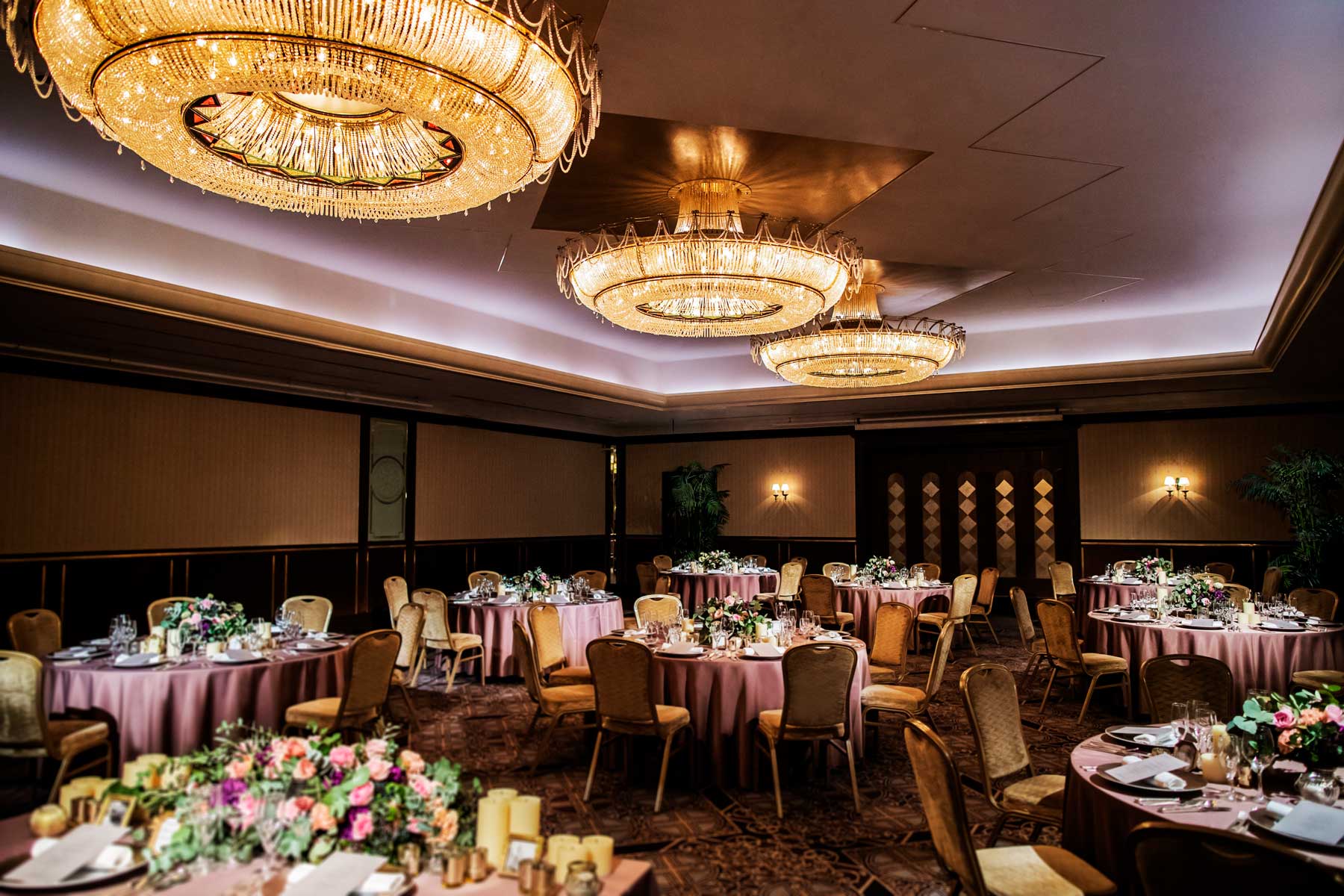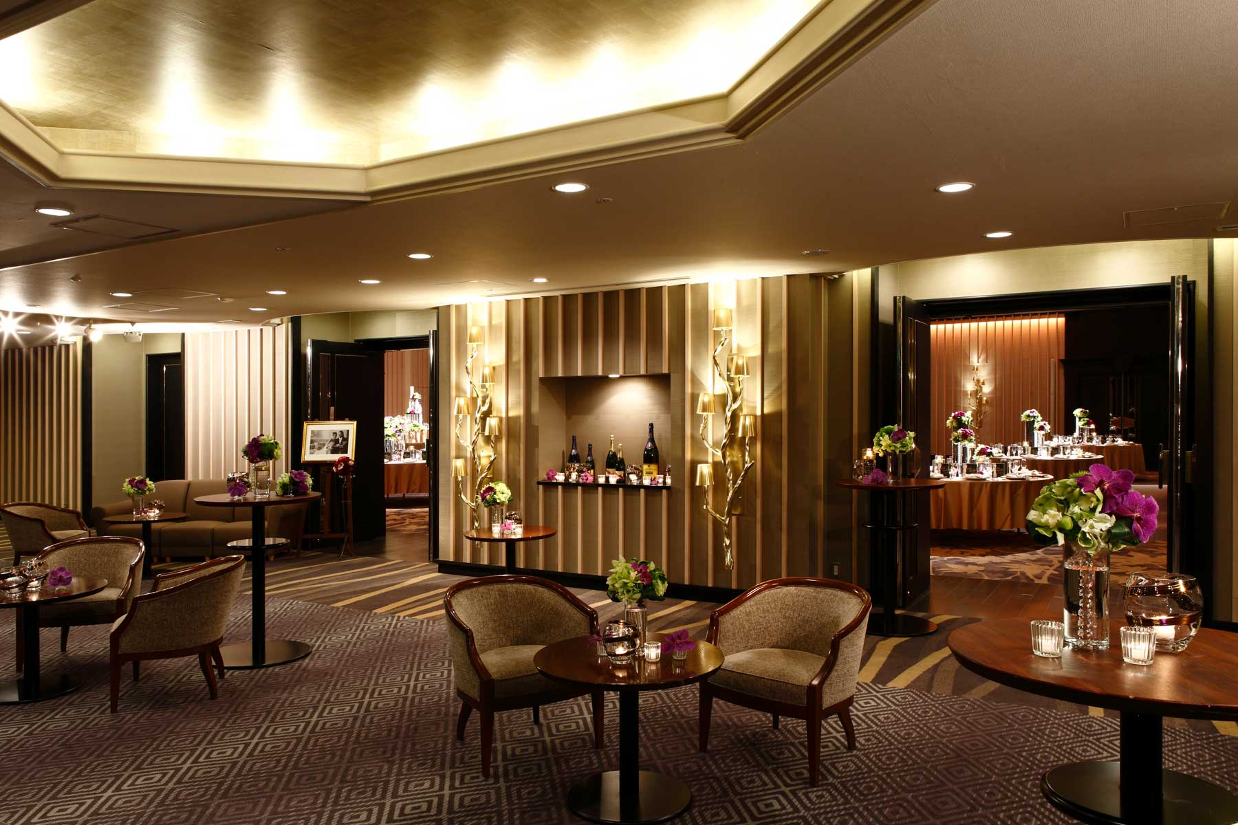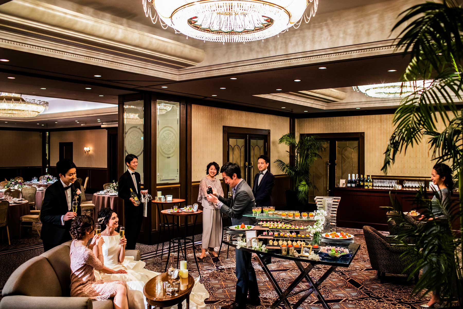 王冠を模した豪華なシャンデリアが印象的。2ルームを貸切り出来る贅沢さも魅力です。ウエルカムパーティやデザートブッフェなど、楽しい演出も思いのままに。